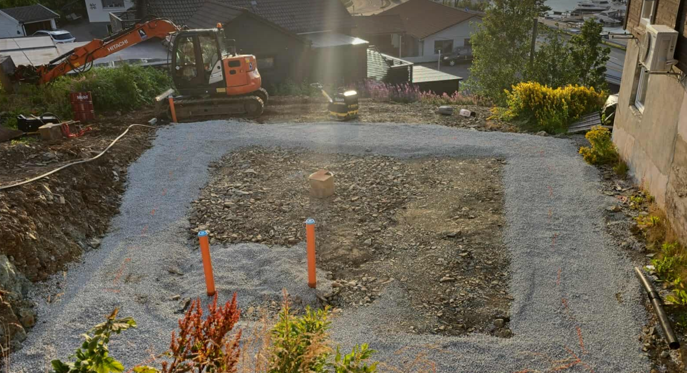 Transportering er prosessen med å flytte masser, materialer eller utstyr fra ett sted til et annet på en trygg og effektiv måte. Dette er en viktig del av arbeidet for å sikre fremdrift og god logistikk på byggeplassen.
